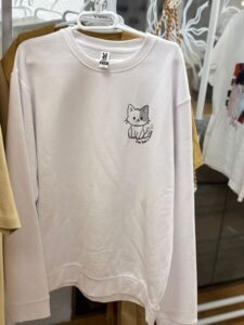 Your new everyday throw-on crewneck — ultra-soft, cozy, and perfect for layering. A small, adorable cartoon cat print on the left chest adds a sweet touch of café charm. Premium cotton-blend fleece, relaxed unisex fit, machine washable