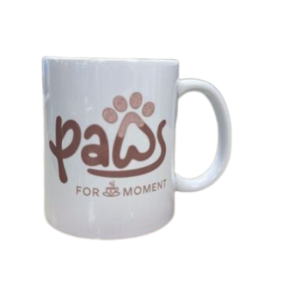 A cozy ceramic mug featuring the iconic PAWS For A Moment logo — your everyday reminder of the purrs and cuddles from our resident cats. Perfect for coffee, tea, or hot chocolate. Dishwasher & microwave safe.